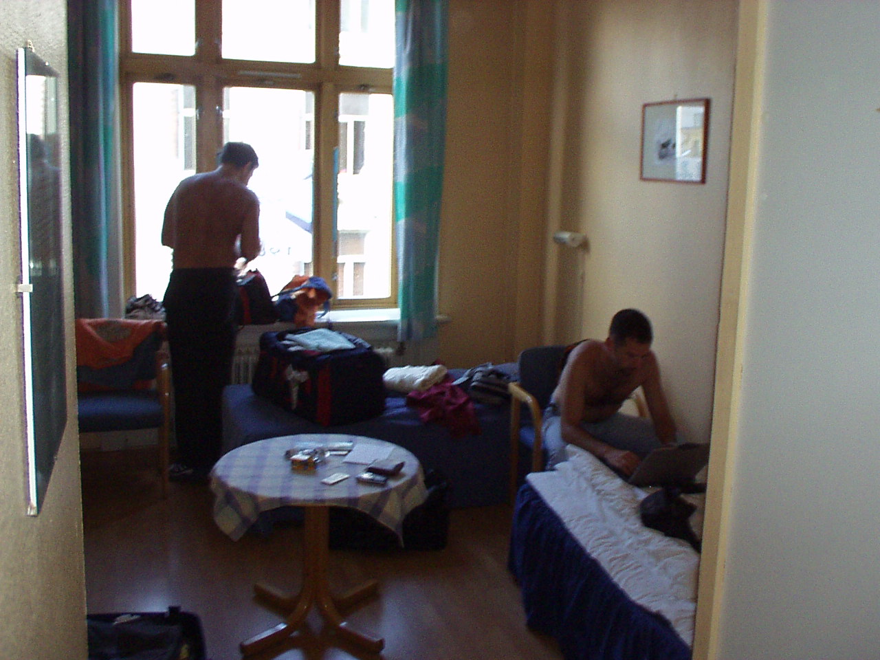 Il centro ci appare subito grazioso e raccolto, profumato al pino silvestre (favola olfattiva che Pippo minaccia di distruggere non appena metterà le mani o altro su una toilette). Le distanze sono davvero ridotte (peccato che l'apparato logistico che ci trasciniamo dietro faccia invidia alla brigata Julia). La nostra lussuosa camera quadrupla con doccia e angolo cottura non è proprio una suite, ma è pulita, ordinata, spaziosa (nei limiti del ragionevole) ed offre una gradevole vista. Decidiamo di personalizzare il davanzale con arredi estemporanei. Qualcuno ci guarda incuriosito. Ci rinfreschiamo e usciamo alla spasmodica ricerca di cibo.