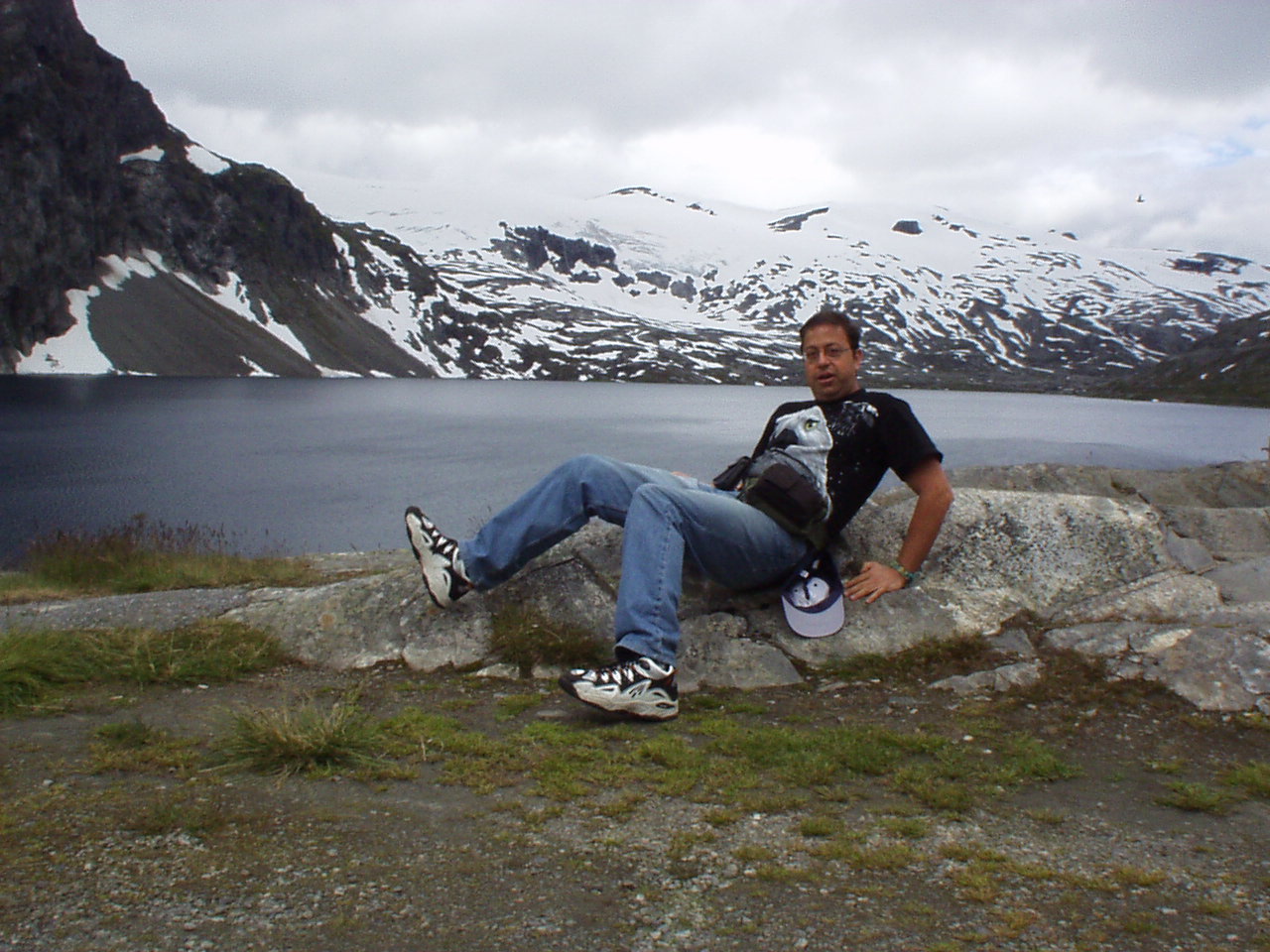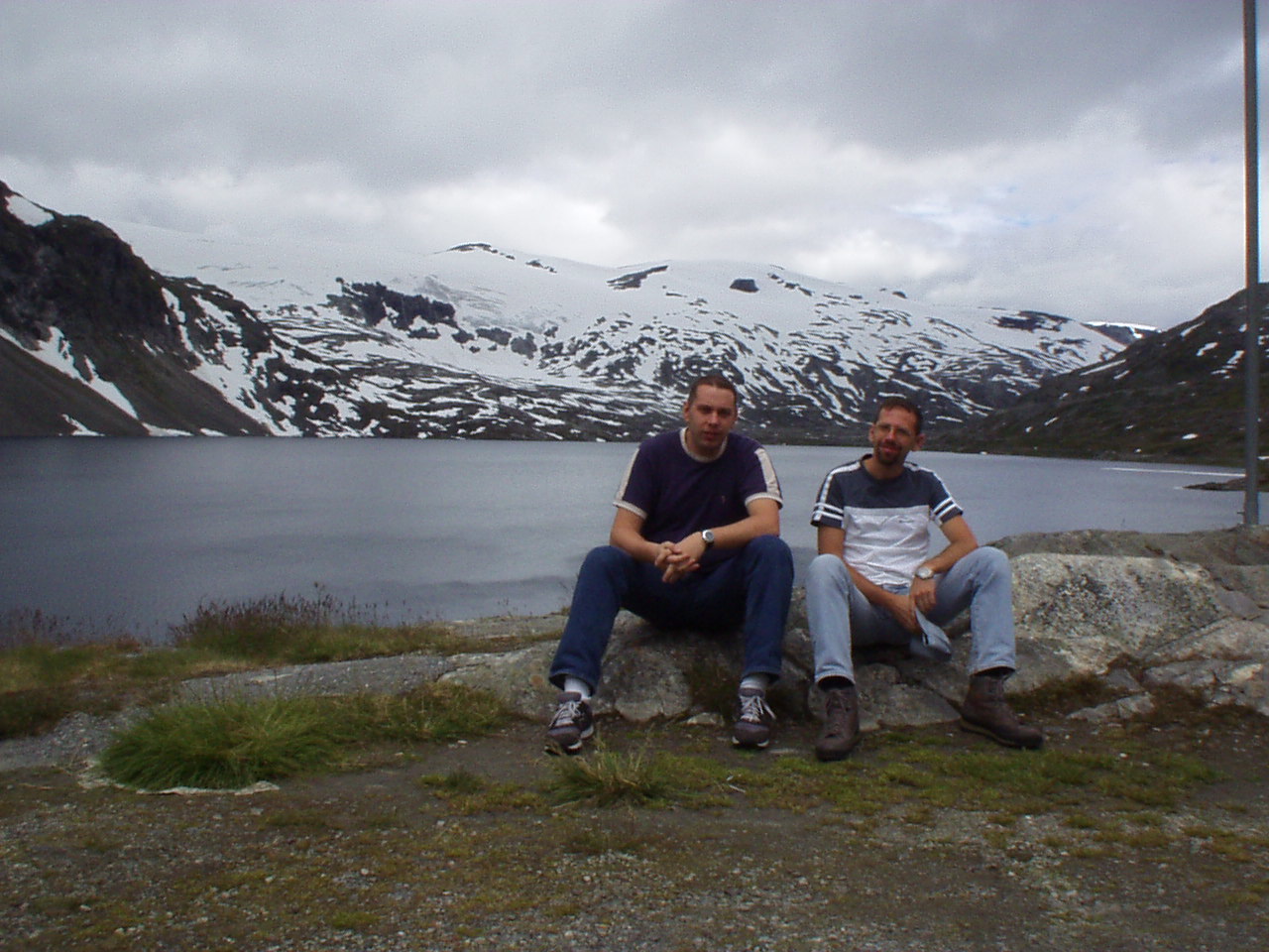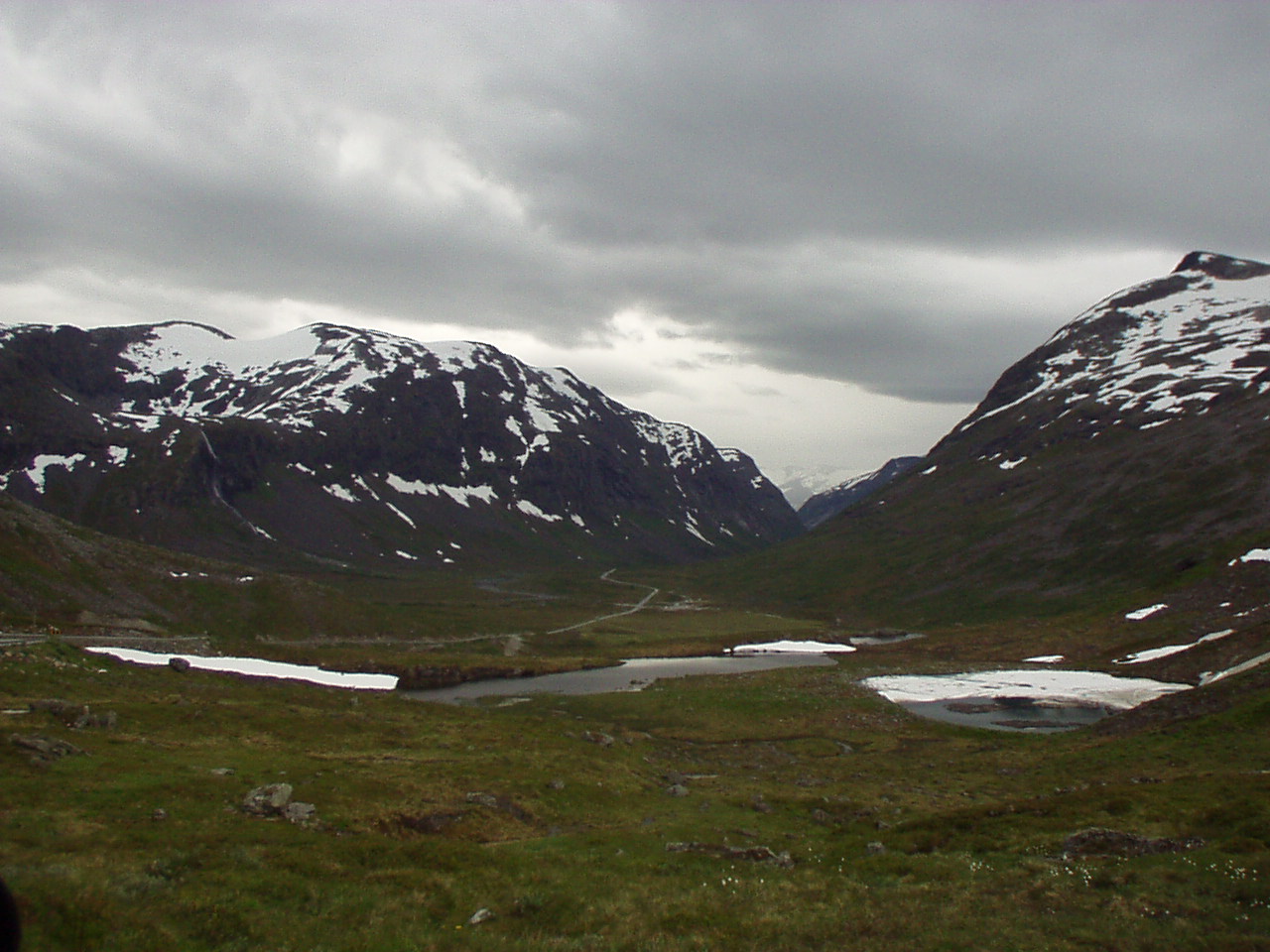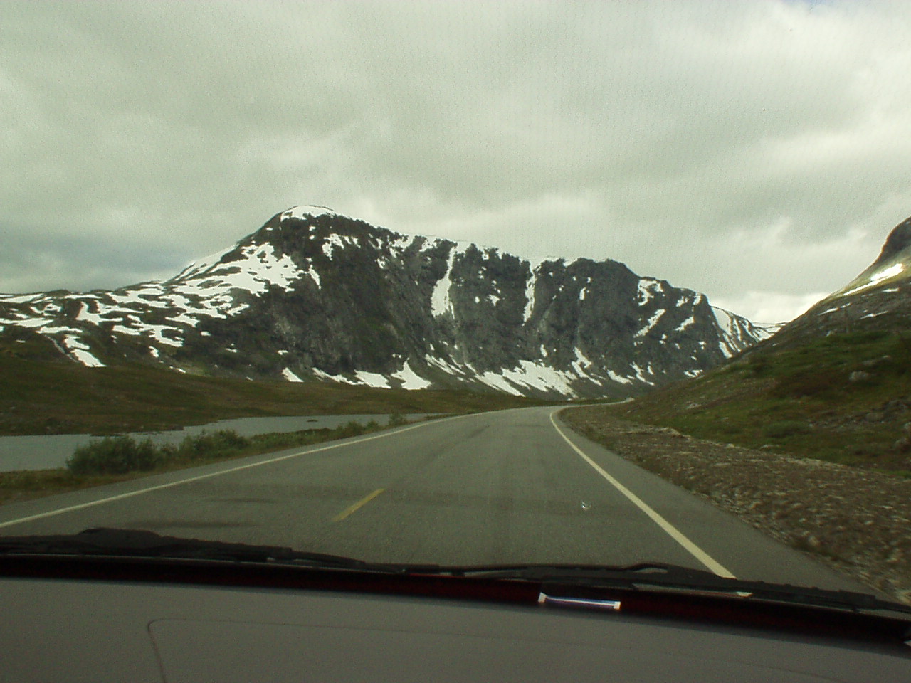 Usciamo dal paese facendo una mini tappa alla stavkirke per qualche foto e poi via verso il passo del monte Dalsnibba (1476m); lungo la strada troviamo un torrente nel quale gettare il proiettile (lontani da occhi discreti ed indiscreti). Giunti al passo la strada è contornata da laghetti semi ghiacciati con mini-iceberg alla deriva e da mucchi di neve, paesaggio estremamente montano che viene totalmente stravolto nei successivi 25km in cui ritorniamo al livello del mare a Geiranger, proseguiamo ancora verso nord e raggiungiamo Eidsdal dove traghettiamo verso Linge.