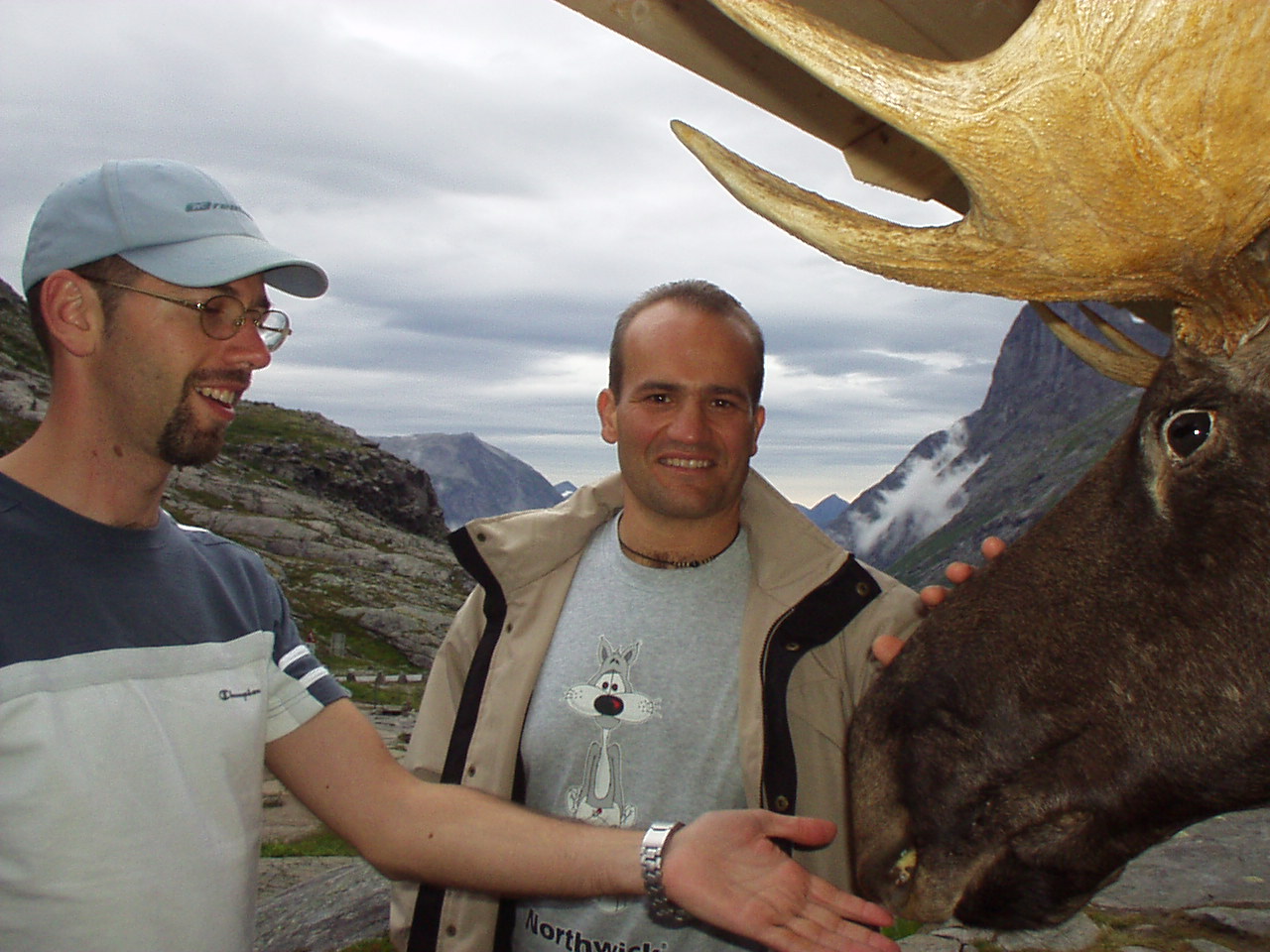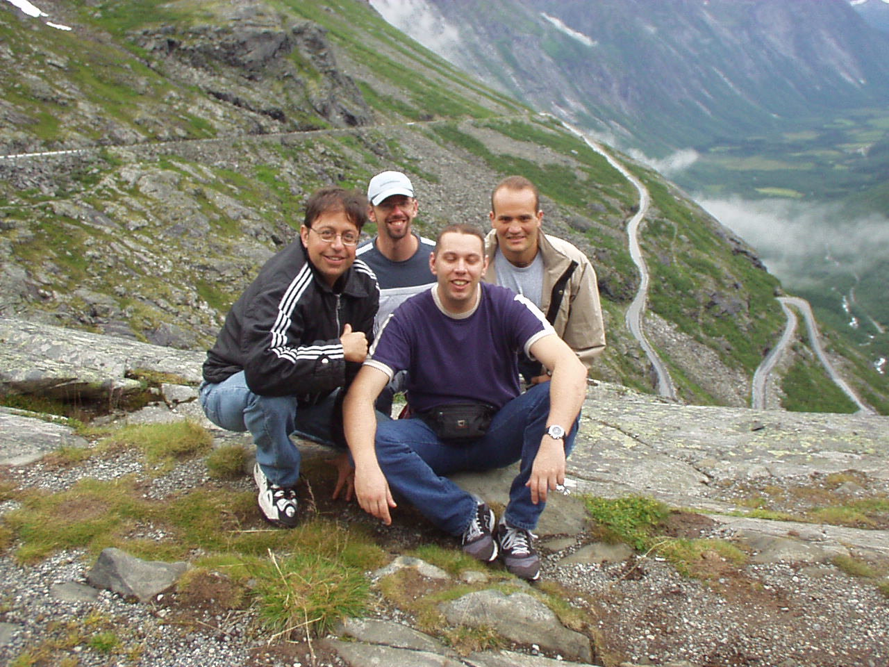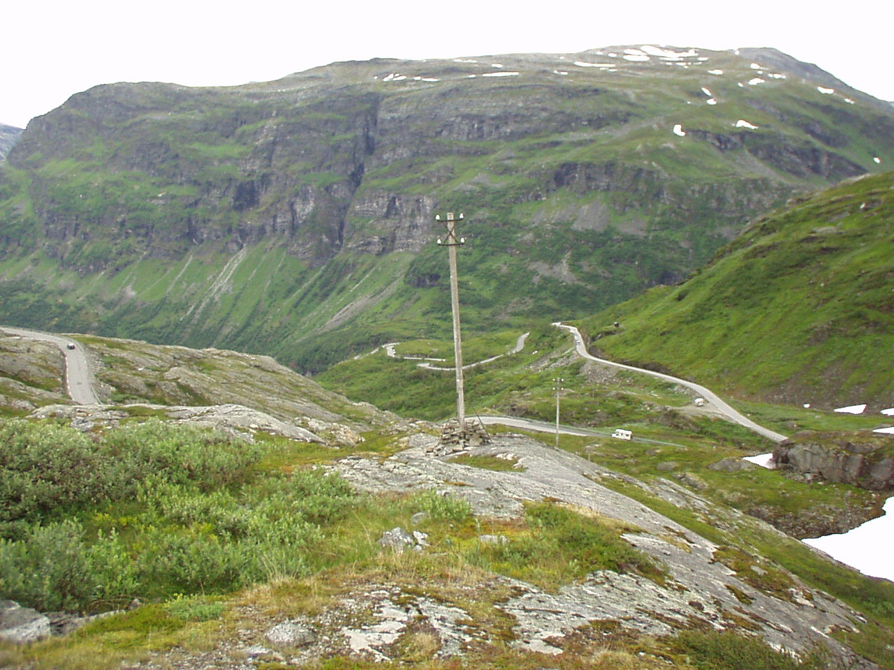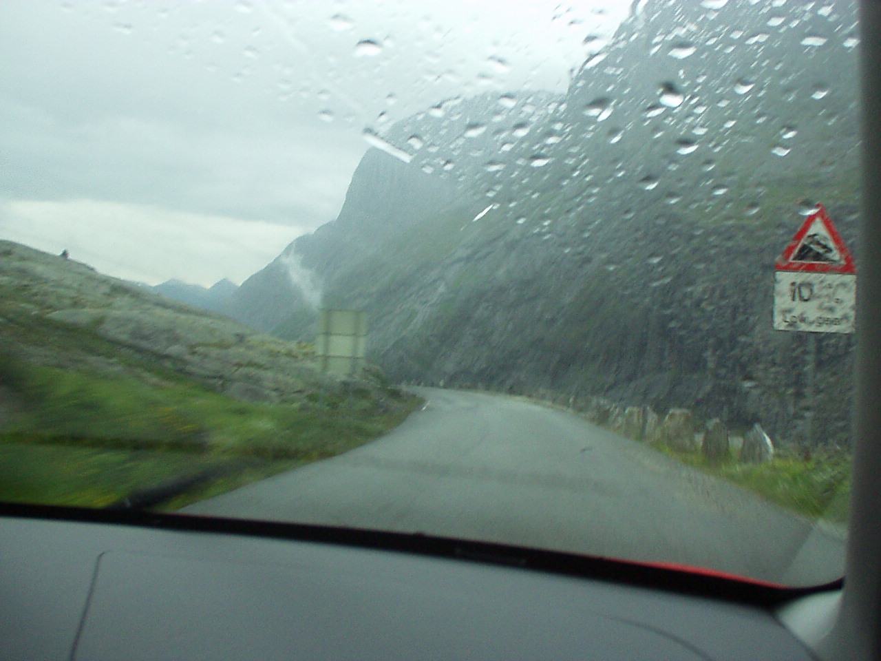 Appena piantate le tende riprendiamo la nostra moda del turismo serale, imboccando la strada per il Trollstigenpass. La valle ci si chiude davanti e non si vede uscita. D'improvviso poi la strada inizia ad arrampicarsi tornante dopo tornante sulla parete, come appesa a due cascate che la delimitano a destra e a sinistra. Non sembra un lavoro di uomini, ed è per questo che viene chiamata la "salita dei troll", come se fosse stata realizzata da queste strane creature mitologiche.