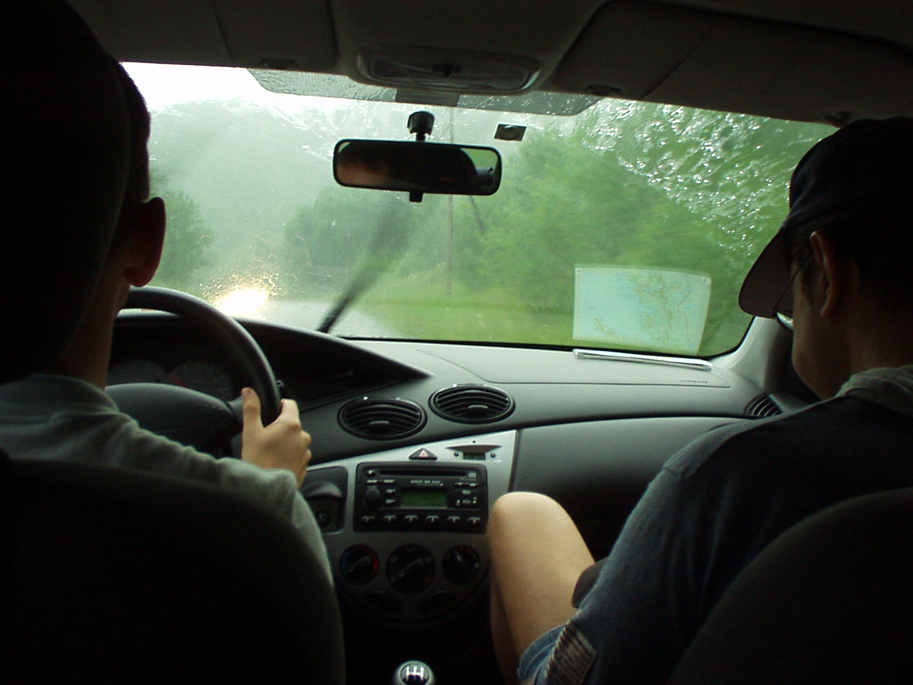 Sul percorso cominciano a ricomparire le betulle, sempre più fitte, poi le conifere. Ci fermiamo a Fauske per una sosta carburante+spesa, ed inizia a piovere. Lungo i chilometri successivi ne viene giù a secchi, fra le imprecazioni di Gianfranco e la filosofia di Alexis (tutta quella che cade ora non cade dopo, e ora siamo in macchina). Smette di piovere 20 chilometri prima di Ulsvåg, e Pippo ne approfitta per togliere il volante dalle mani del fratello (del resto fra poco c'è un traghetto...).