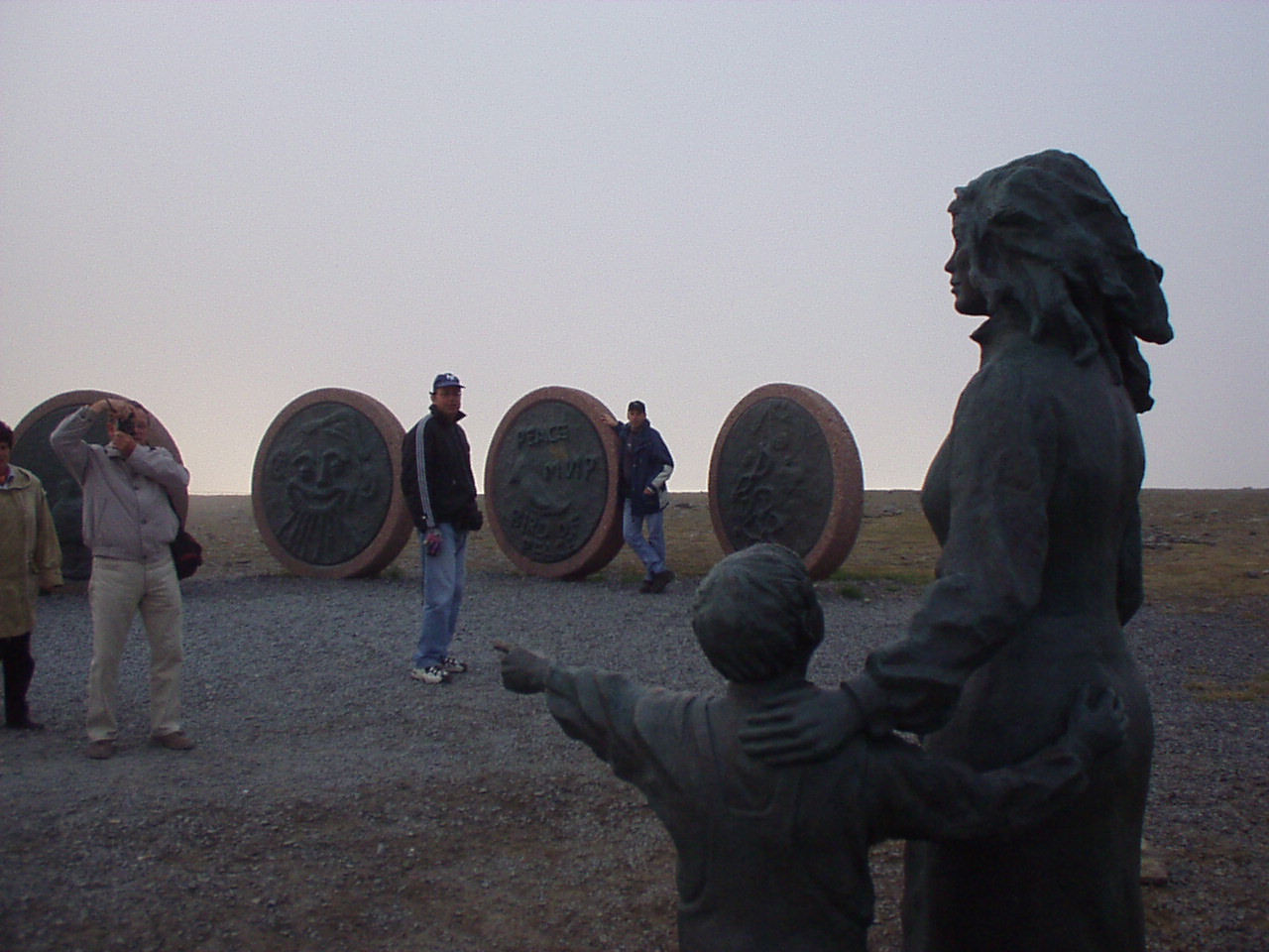 Intorno all'una di notte (la vera mezzanotte, ripetiamo) l'atmosfera si è fatta ben più raccolta. Tre ragazzi polacchi (forse) danno la scalata al globo monumentale, e li immortaliamo con piacere. Ci sono alcuni spagnoli, olandesi ed un paio di altri italiani. Qualche nuvola è rimasta, ma il sole ci si mostra almeno un attimo, sorridendo silenzioso. Per chi vuole è il momento di fumare in tutta tranquillità.