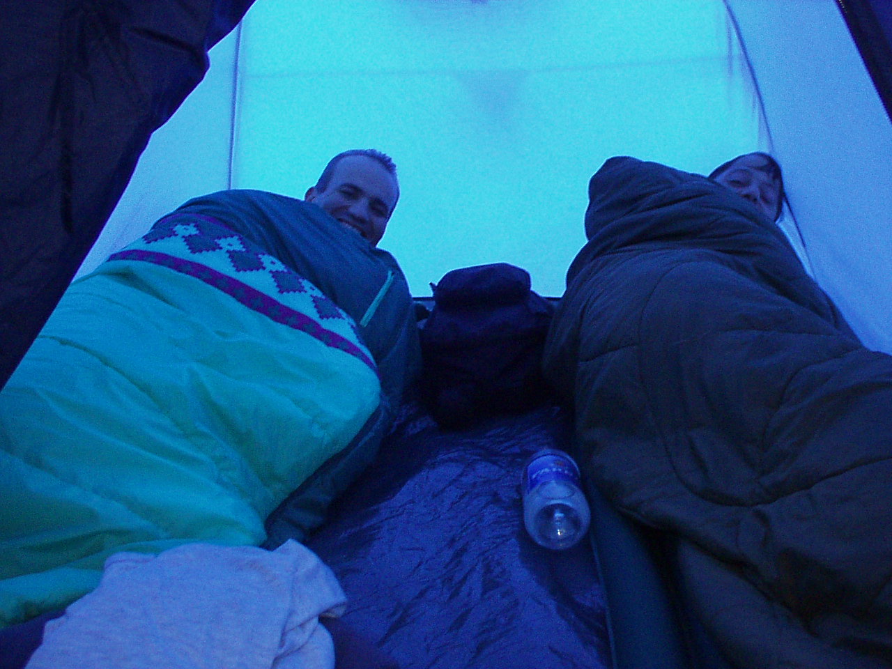 Rientriamo in tenda in un silenzio grande almeno quanto la luce intorno a noi. Si combatte il freddo con ogni sistema. Ringraziamo l'esercito italiano per averci messo a disposizione la mitica "superpippo". Speriamo che non si faccia la fine del Similaun, ma non sembra che ci debbano essere problemi. Anche Gianfranco, all'inizio un po' titubante accetta di buon grado la spartana sistemazione, forse ancora in preda all'eccitazione che questa serata gli ha dato.