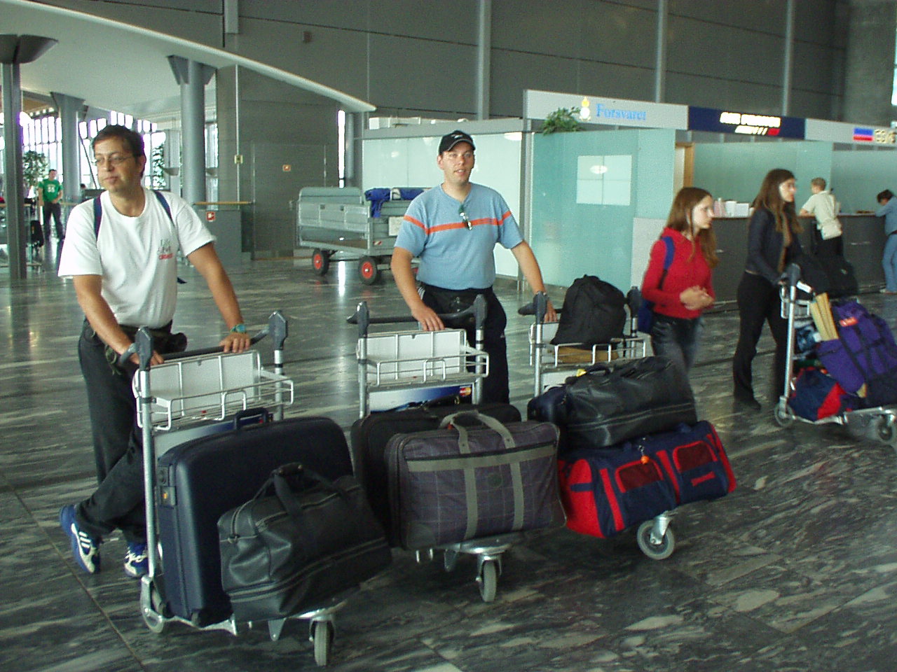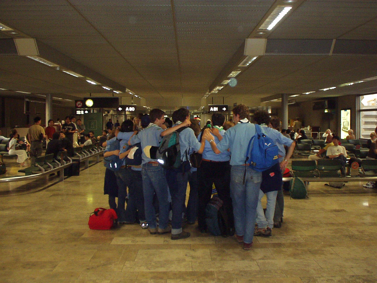 Avendo gonfiato i bagagli a mano come cornamuse, ci avviciniamo all'area dei controlli, cominciando a temere che al metal detector cominci la solita sinfonia. Pippo, per precauzione, ha eliminato qualsiasi tipo di accessorio; Ale svuota le tasche (riuscendo a tirare fuori un'infinità di cosette). Gianfranco, invece, ha ritrovato il suo habitat naturale, e si muove come una rana in uno stagno, già facendo i conti col cambio, per valutare le spese da fare al duty-free. Si limiterà alle due classiche stecche di sigarette (in realtà deve ancora esaurire quelle accumulate nei suoi numerosi e recenti viaggi).