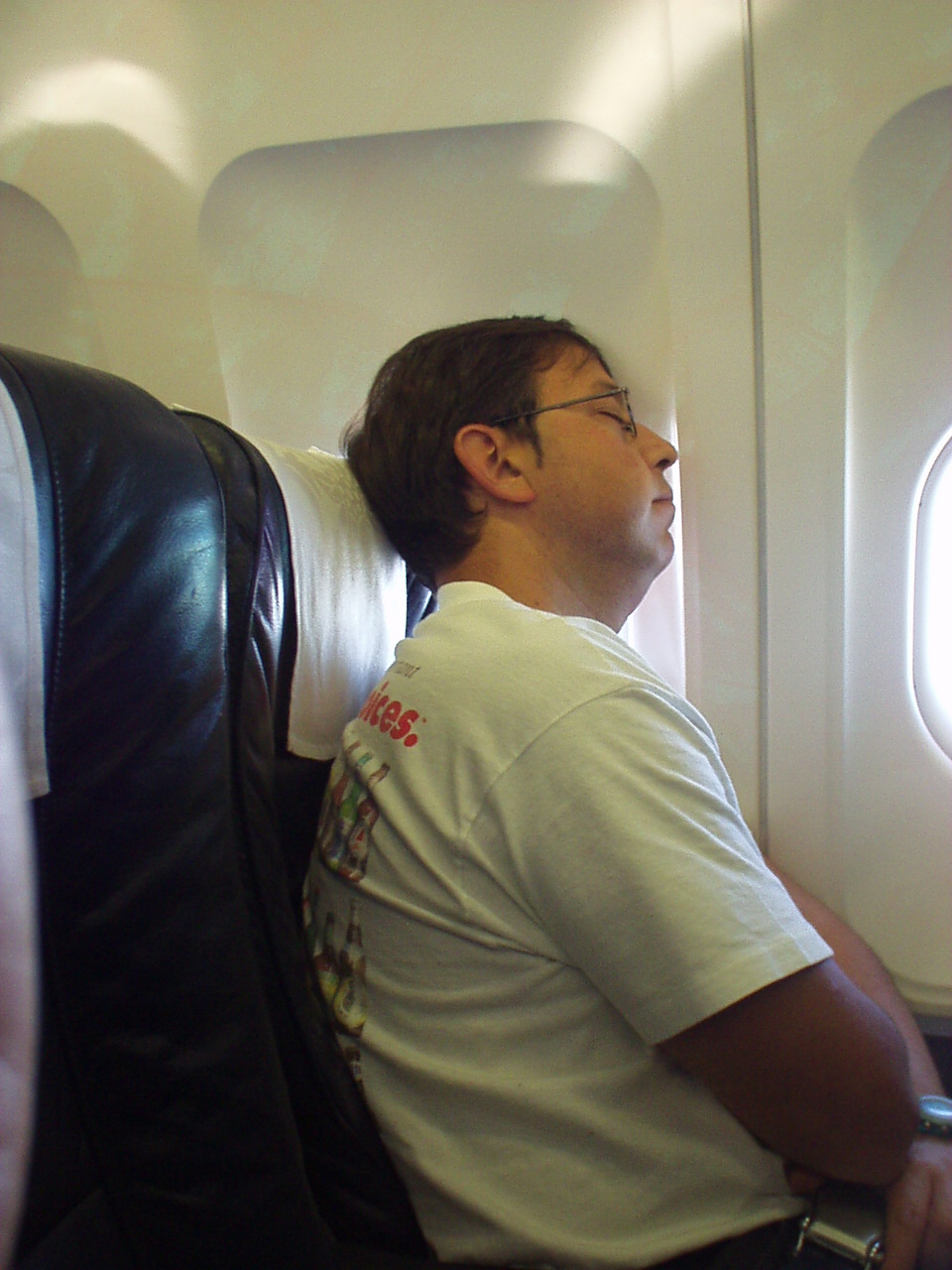 In aereo si mangia e si sonnecchia, ci fanno vedere di nuovo il solito cartone animato di Tom e Jerry (sempre accompagnato dalle risa di Gianfranco, che sembra non averlo visto mai). Del resto aveva fatto lo stesso all'andata (cfr. Diario 1).