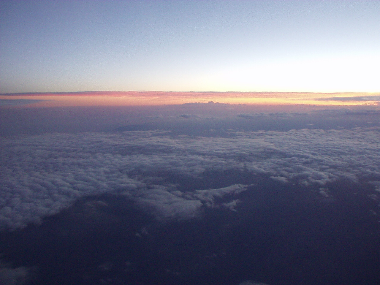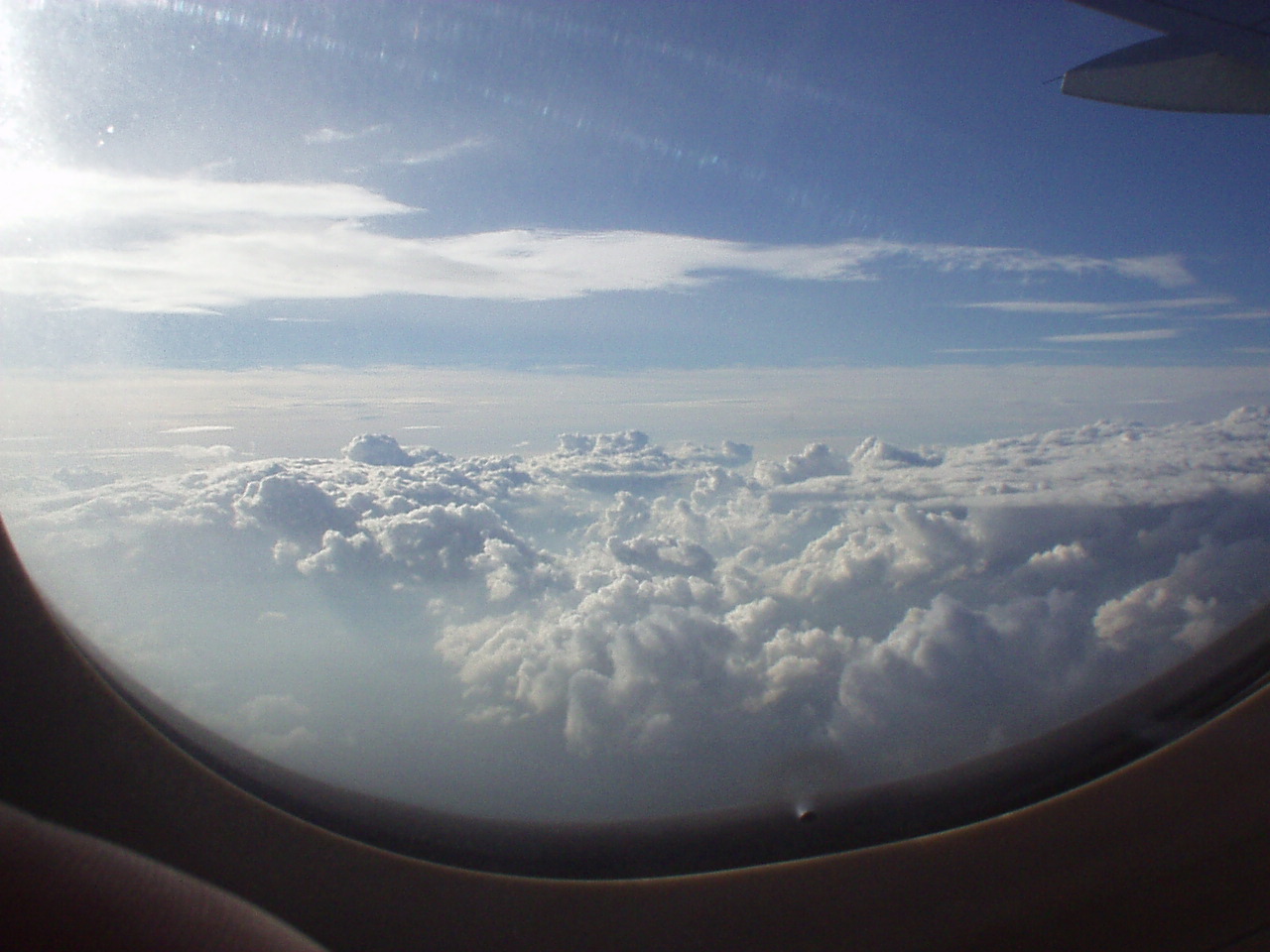 L'aereo è più piccolo degli altri su cui abbiamo volato. Un paio di colli non trovano spazio nel portabagagli. Gianfranco ne tiene uno sotto il sedile, Pippo non riesce a far entrare il suo nemmeno lì. In soccorso arriva una hostess che dapprima tenta ancora di far entrare la borsa nel bauletto (operazione impossibile a chiunque, se non si è capaci di deformare un aeroplano), poi cambia tattica e assicura saldamente il borsotto (divenuto valigione dopo il check-in) su un sedile libero. Arrivato a casa Pippo scoprirà con orrore che queste manovre hanno procurato l'apertura e la dispersione totale del dentifricio. Anche questo secondo volo è tranquillo, peccato per le nuvole che non ci hanno permesso di goderci lo spettacolo delle città illuminate alle prime ore della sera.