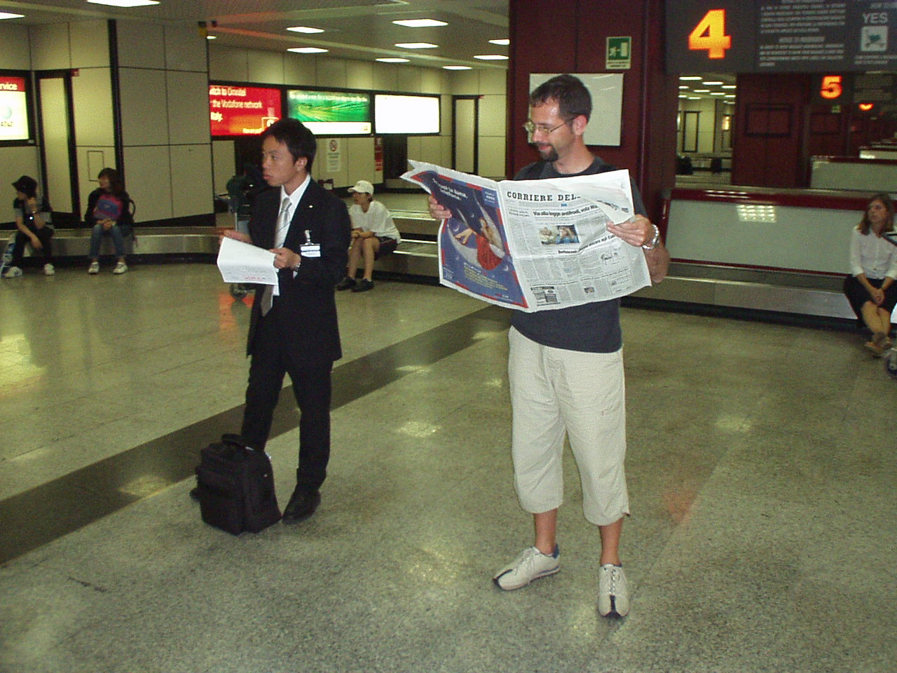 Per la prima volta da quando siamo partiti vediamo una stella (in realtà è Venere, ma non vogliamo essere troppo fiscali). Arriviamo in un buio per noi irreale, con la pista che compare dal nulla sotto i nostri piedi solo all'ultimo momento. Il resto è routine, con il trasferimento in navetta, Ale che spara a destra e sinistra frasi elementari in Giapponese (seguito con curiosità dai Nippo-turisti), il ritiro dei bagagli... L'arrivo di quelli dei cinesi, salutata con grida di giubilo da tutto il gruppo, sembra "OK il prezzo è giusto": friggitrici, videoregistratori, cassette di vino (!) e quant'altro si possa immaginare.
