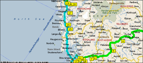 di Bergen. Lungo il tragitto vi sono due tratti da percorrere in traghetto: il